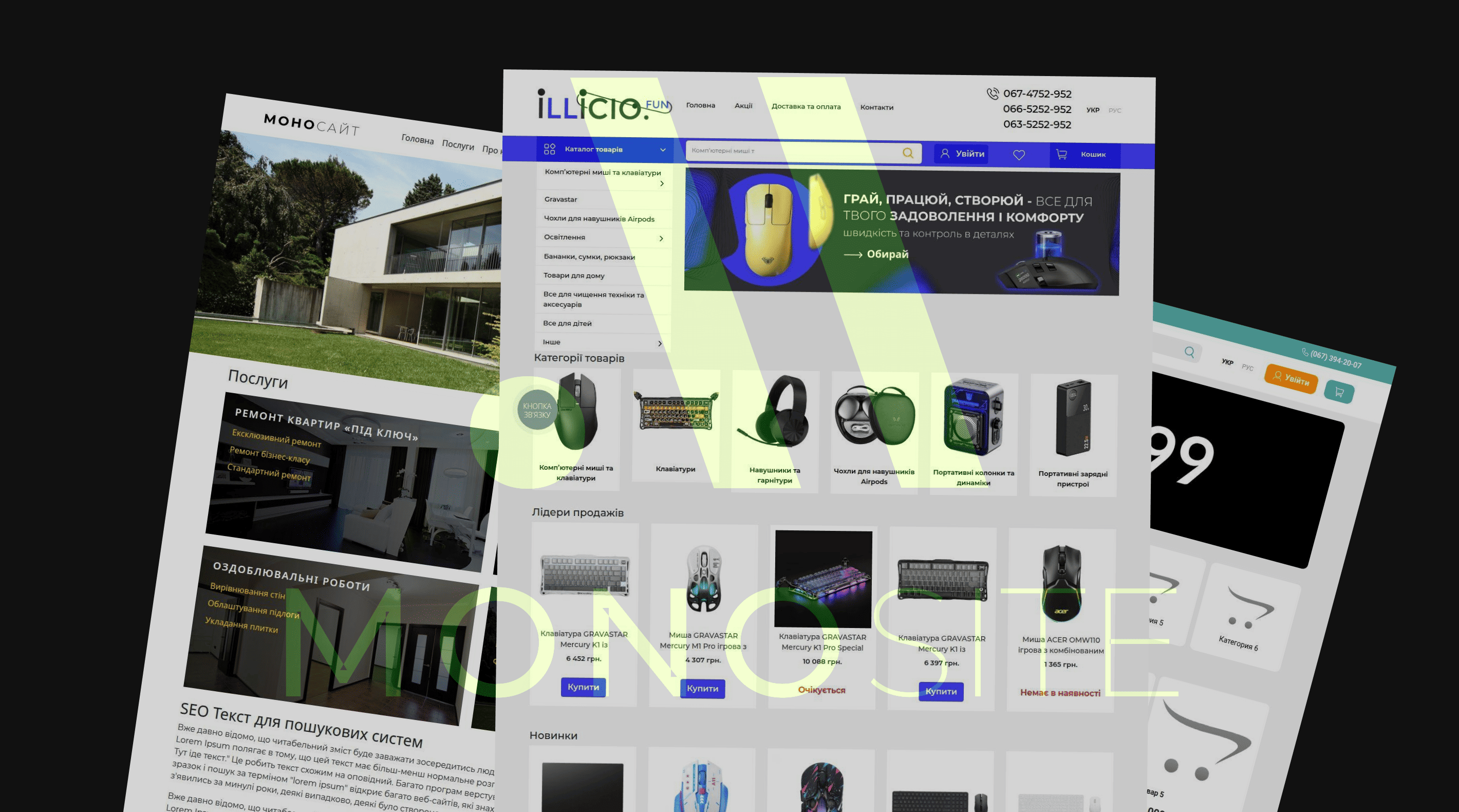 Компанія Моносайт, заснована у 2019 році, спеціалізується на розробці інтернет-магазинів та сайтів для бізнесу. Ми реалізували понад 100 проектів, зібравши міцну команду з 10+ фахівців, що дозволяє нам ефективно вести безліч проектів одночасно та надавати послуги з реклами в Google, SEO та соціальних мережах.